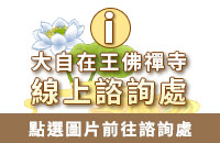 大自在王佛為釋迦牟尼佛的法身佛,有別於一般的盤腿佛像,莊嚴雋逸,世間少有。佛的右手是佛乘宗的「一法印」,也是「轉法輪印」;左手是「與願印」,以佛之威德力滿足眾生之所願。佛的雙手手印,代表福慧兩足尊。佛的雙腳呈行腳的走勢,僕僕風塵,行腳四方,紅塵中不捨有情,積極轉法輪度眾生。